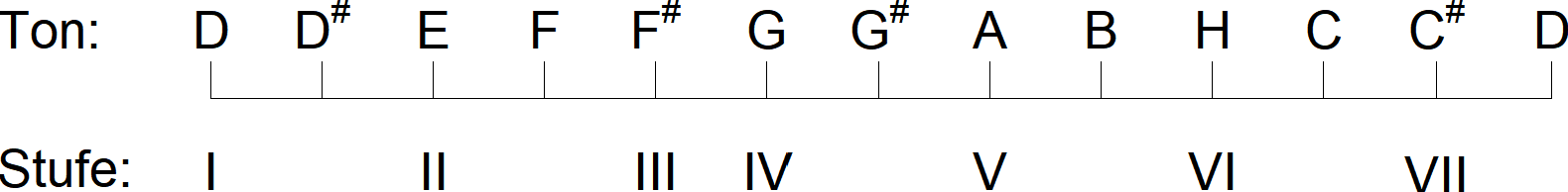 oben. Am linken Rand des Schemas ist aufgeführt, welche Töne beim