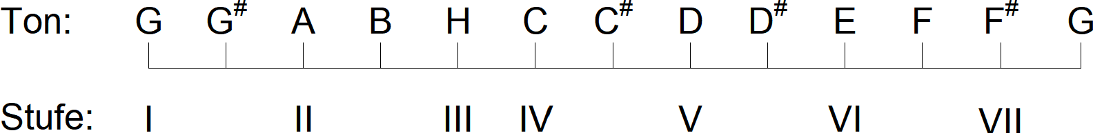 G-Dur-Tonleiter. Ganze Stücke mit diesen zu spielen, kann schnell