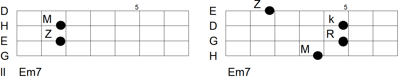 Em7 anstatt G oder Hm7 anstatt Hm oder anstatt D.