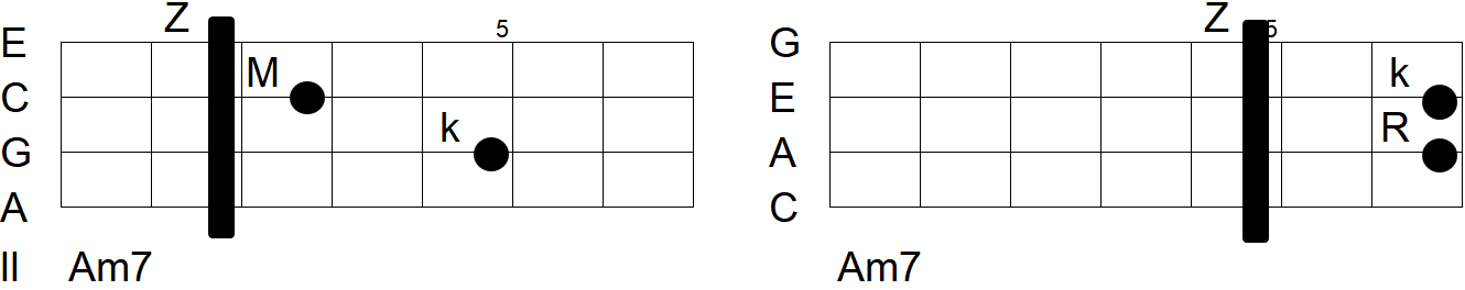 Griffbilder für Akkorde werden im Folgenden anhand eines Schemas